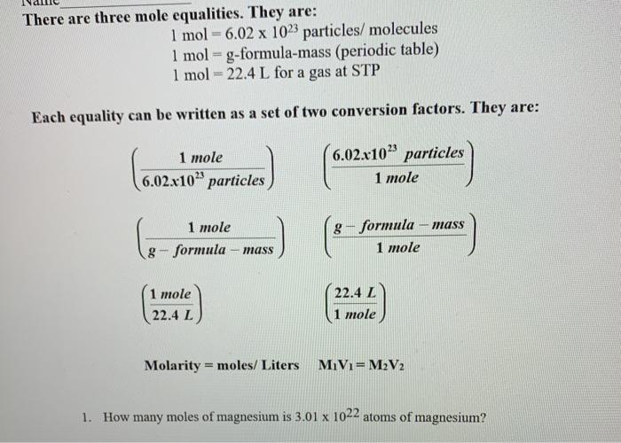 Solved There Are Three Mole Equalities They Are 1 Mol Chegg Com